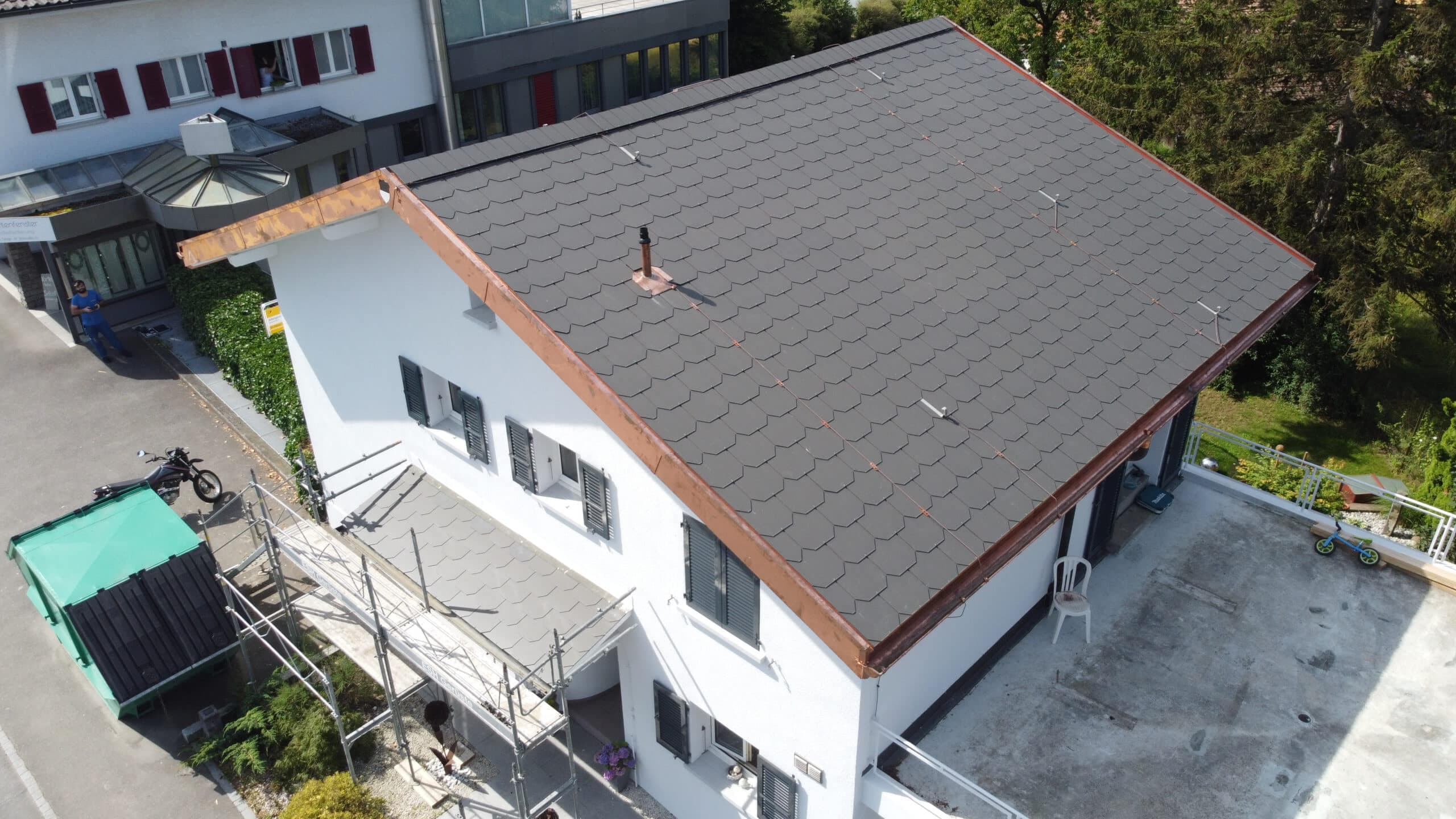 Ob Ziegel, Schiefer oder Metall — wir realisieren Ihr Steildach mit Sorgfalt, Erfahrung und dem Blick fürs Detail.